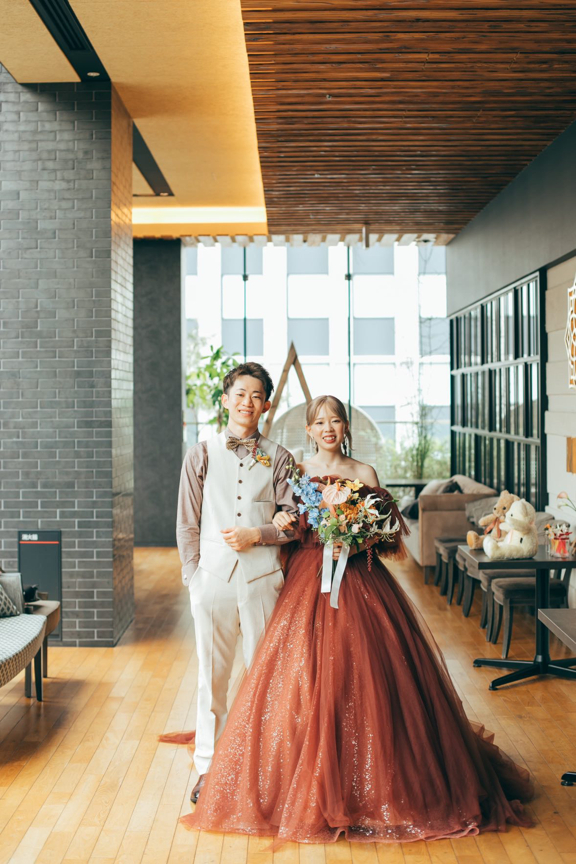 ココアカラーのドレスが会場様の雰囲気ともピッタリです![]()