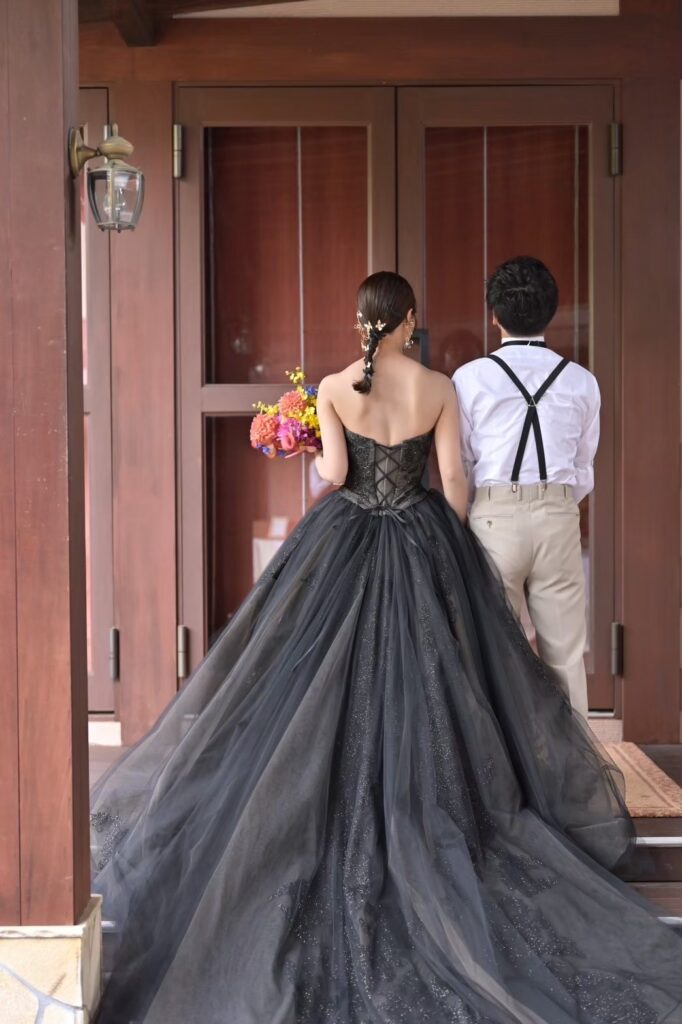 柔らかい雰囲気から、カラードレスはブラックでスタイリッシュにお召しいただきました👗