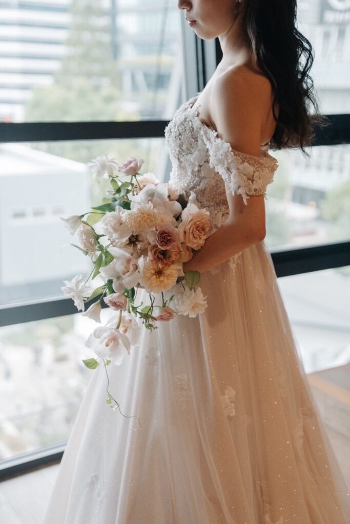 会場様の洗礼された雰囲気にぴったりのお衣裳をお選びいただきました。