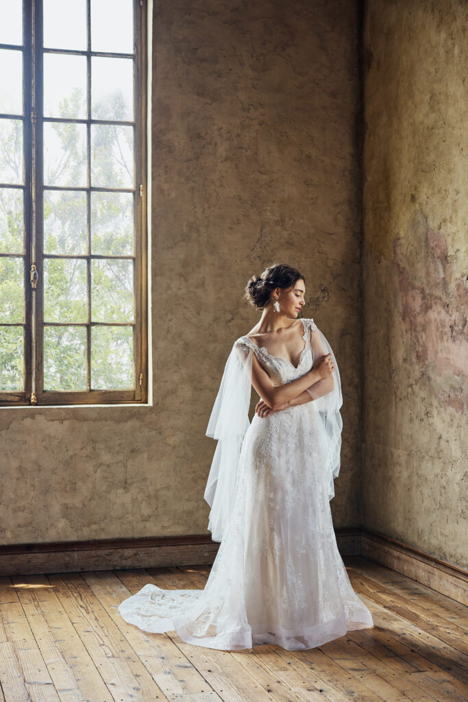 柔らかなウェディングドレス。