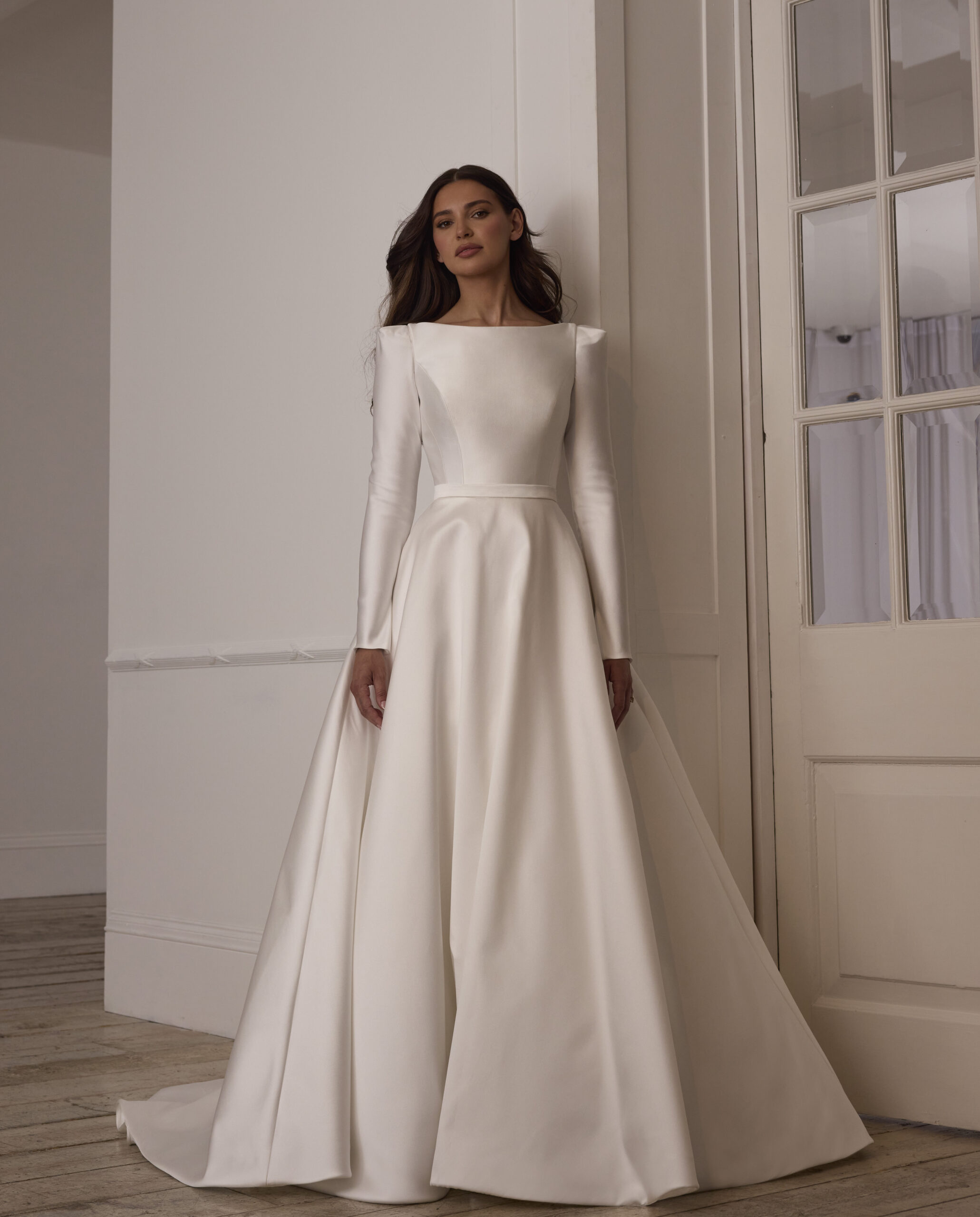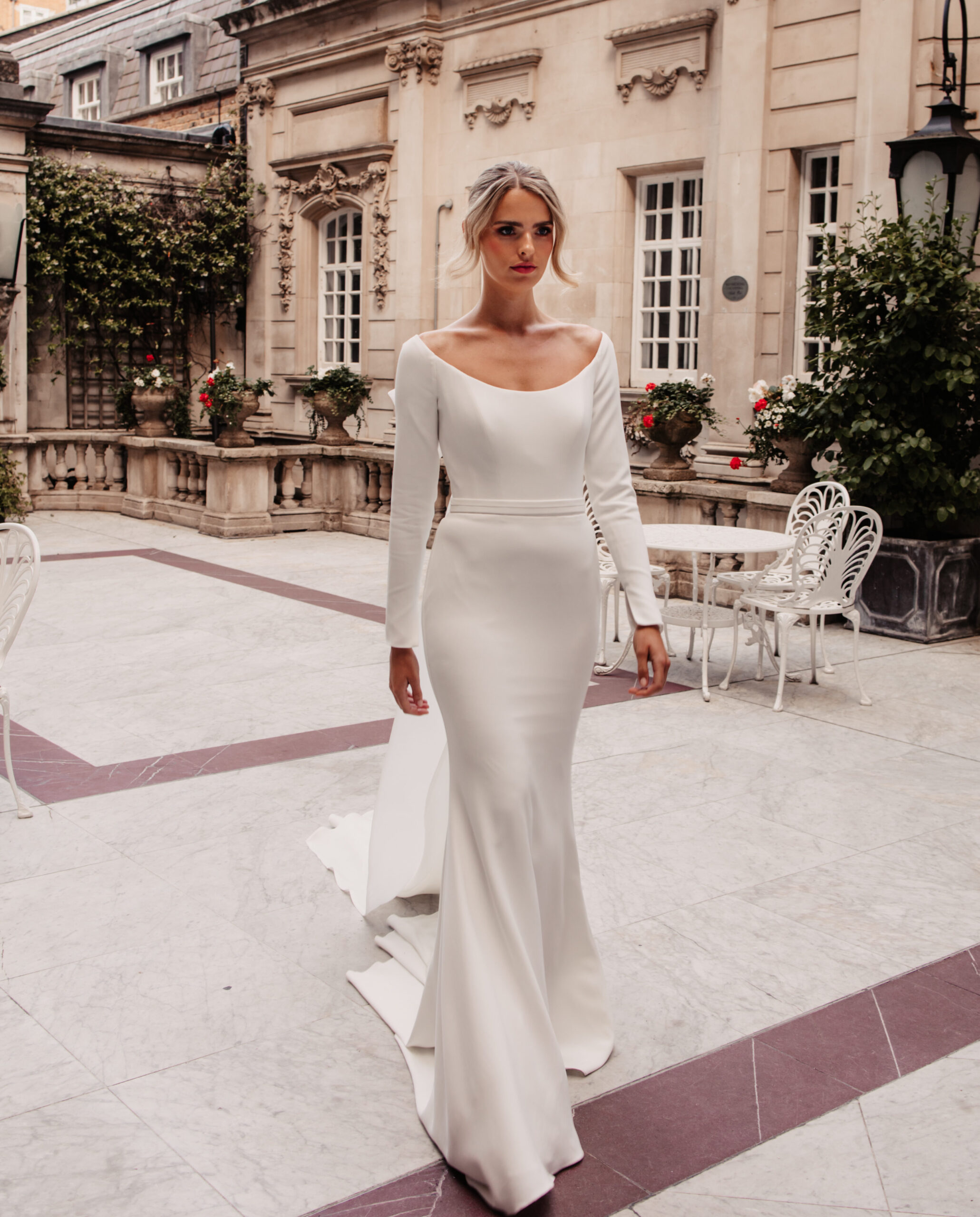 立体的な小花モチーフとビジューが施されラグジュアリーな存在感たっぷりのマーメイドドレス。
